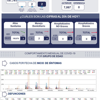 Se dio de alta sanitaria a dos pacientes, con lo que se tiene un registro de 190 mil 674 altas (96.42 por ciento). Con sintomatología leve, aislamiento y manejo en su domicilio hay dos pacientes, y ninguno se encuentra hospitalizado. Se han registrado siete mil 67 defunciones.